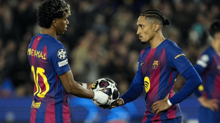 顺带一提,拉菲尼亚评释了他将这两次主罚的职守转交给亚马尔的原因: