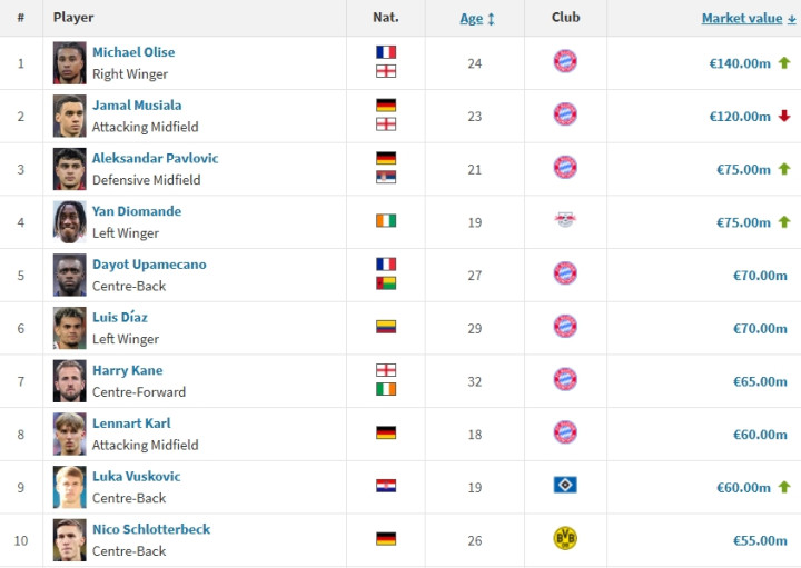 德转3月20日更新了德甲球员的身价,德甲唯二“亿欧先生”奥利塞和穆西亚拉一升一降,奥利塞升1000万欧元,穆西亚拉降1000万欧元,两东说念主从之前的并排德甲第一,如今拉开了2000万欧元的差距,莱比锡边锋迪奥曼德暴涨3000万欧元并排第三,热刺外租后卫武什科维奇暴涨2000万欧元并排第八。