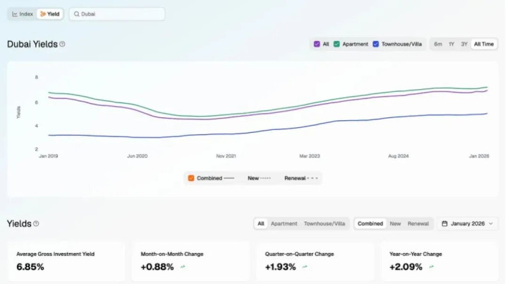 据迪拜地盘局(DLD)2月败露,2026年2月迪拜房产销售往来量约16979套,同比上升5.1%;房产均价1740迪拉姆/平方英尺(约3.95万元/平方米),同比上升12.2%。